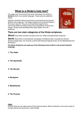Hindu Holy Books Ks2 / The word 'veda' means knowledge.